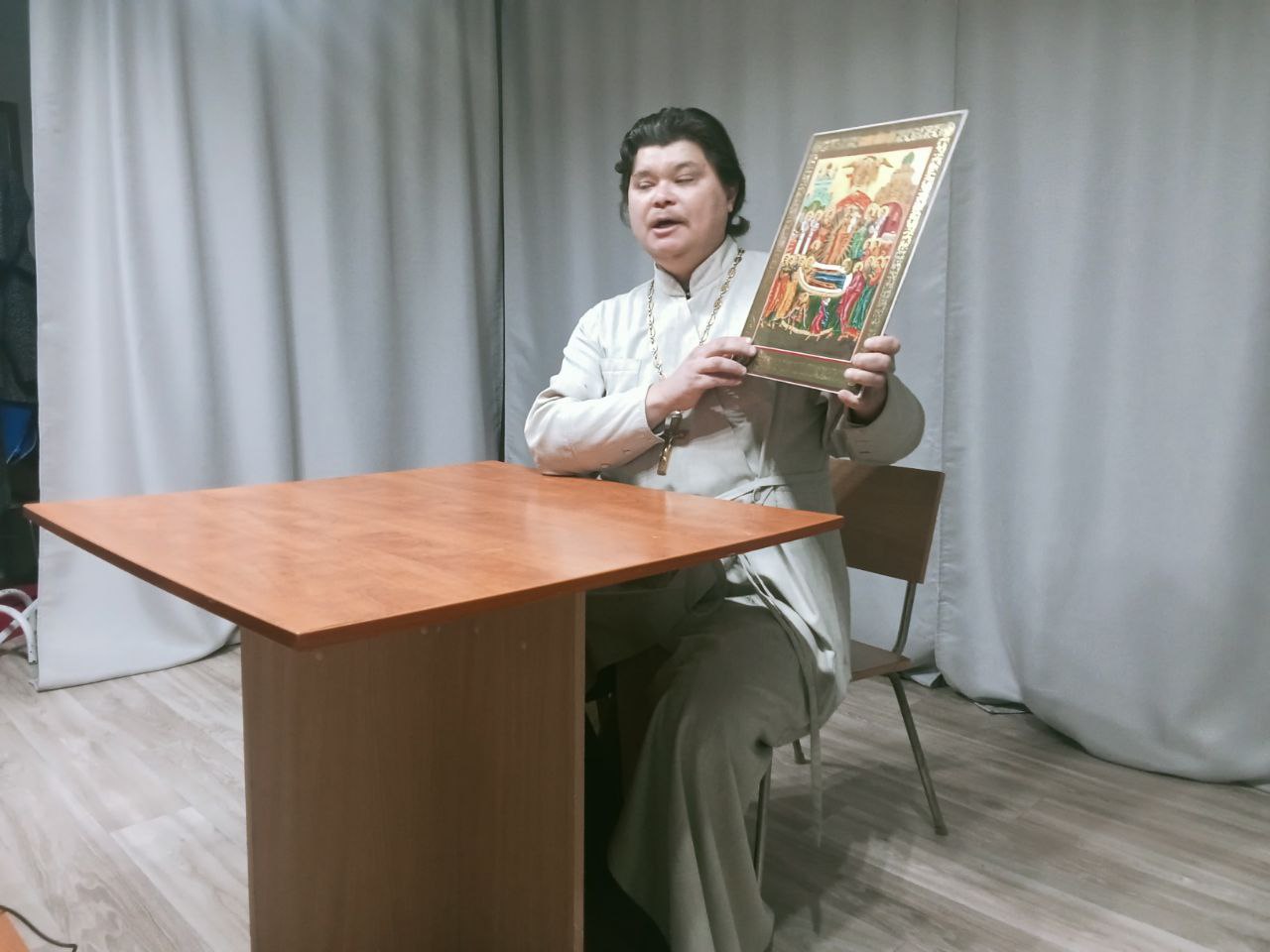 Отец Александр обратился к присутствующим с беседой о предстоящем церковном празднике — Усекновении главы Иоанна Предтечи. Священник рассказал о значении этого события для православных христиан.