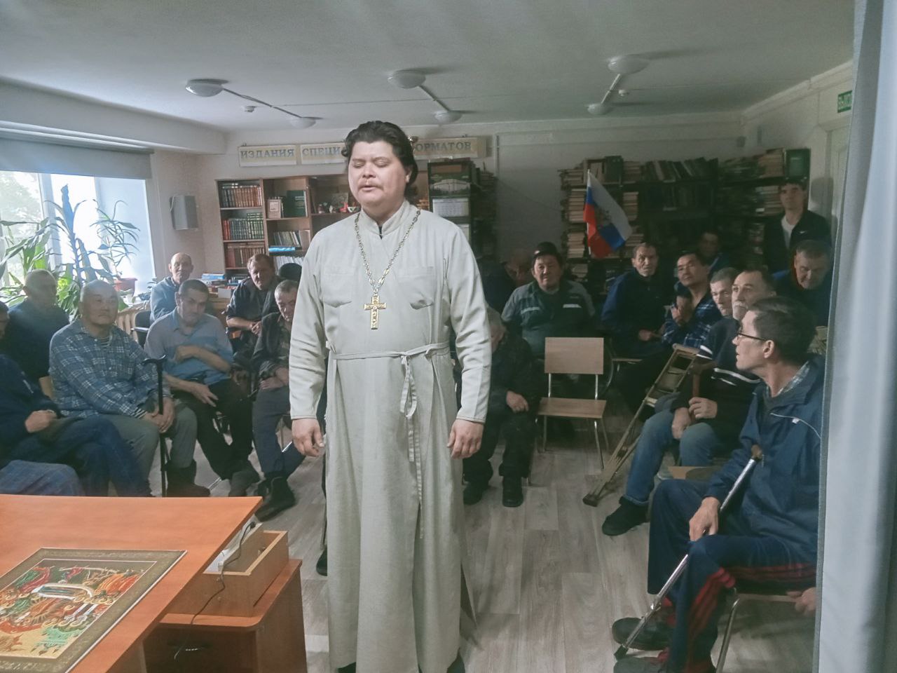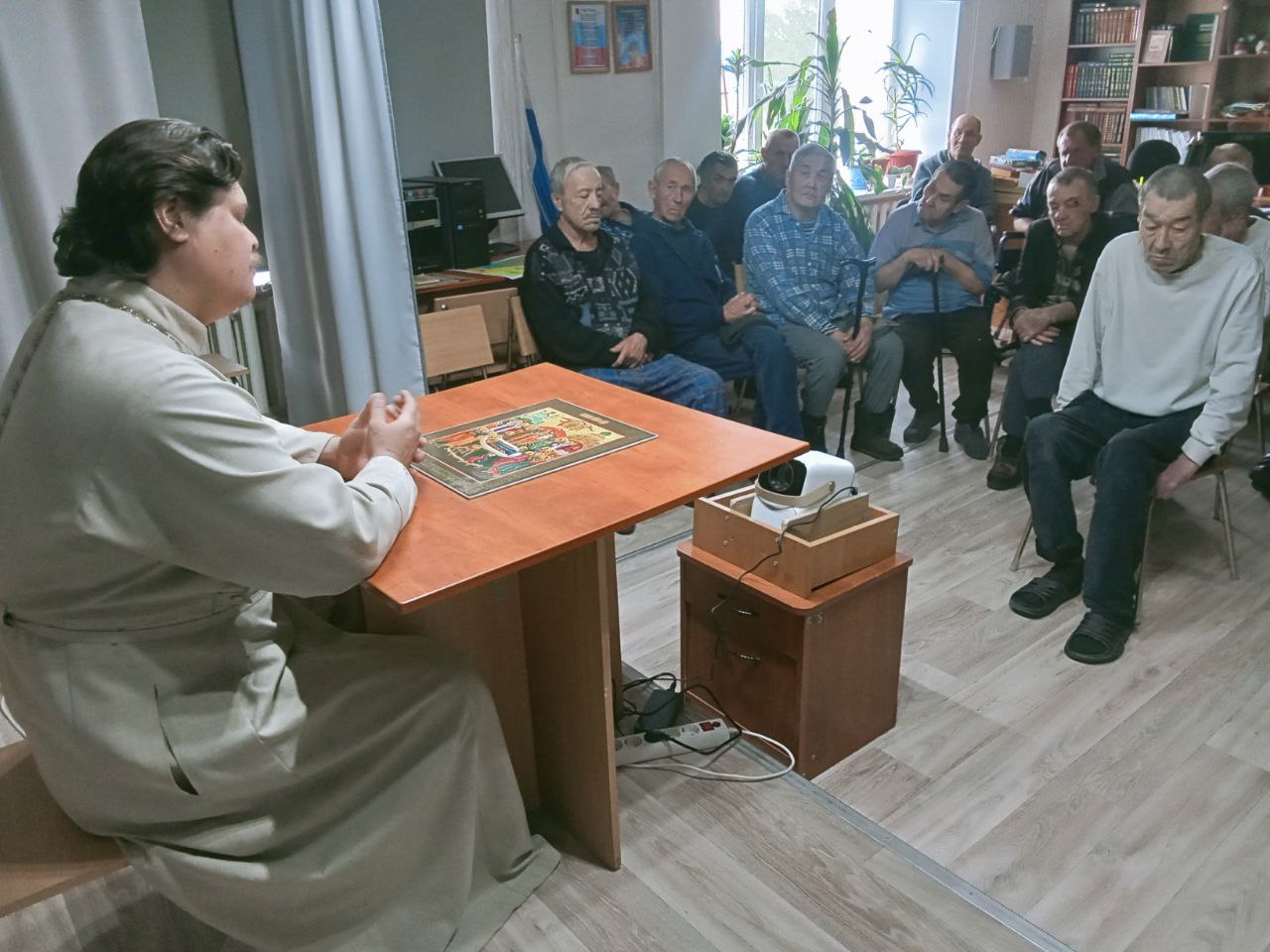 9 сентября 2025 года, в Хоринском доме-интернате состоялась теплая и душевная встреча настоятеля Свято-Никольского храма иерея Александра Жимбеева с насельниками интерната.