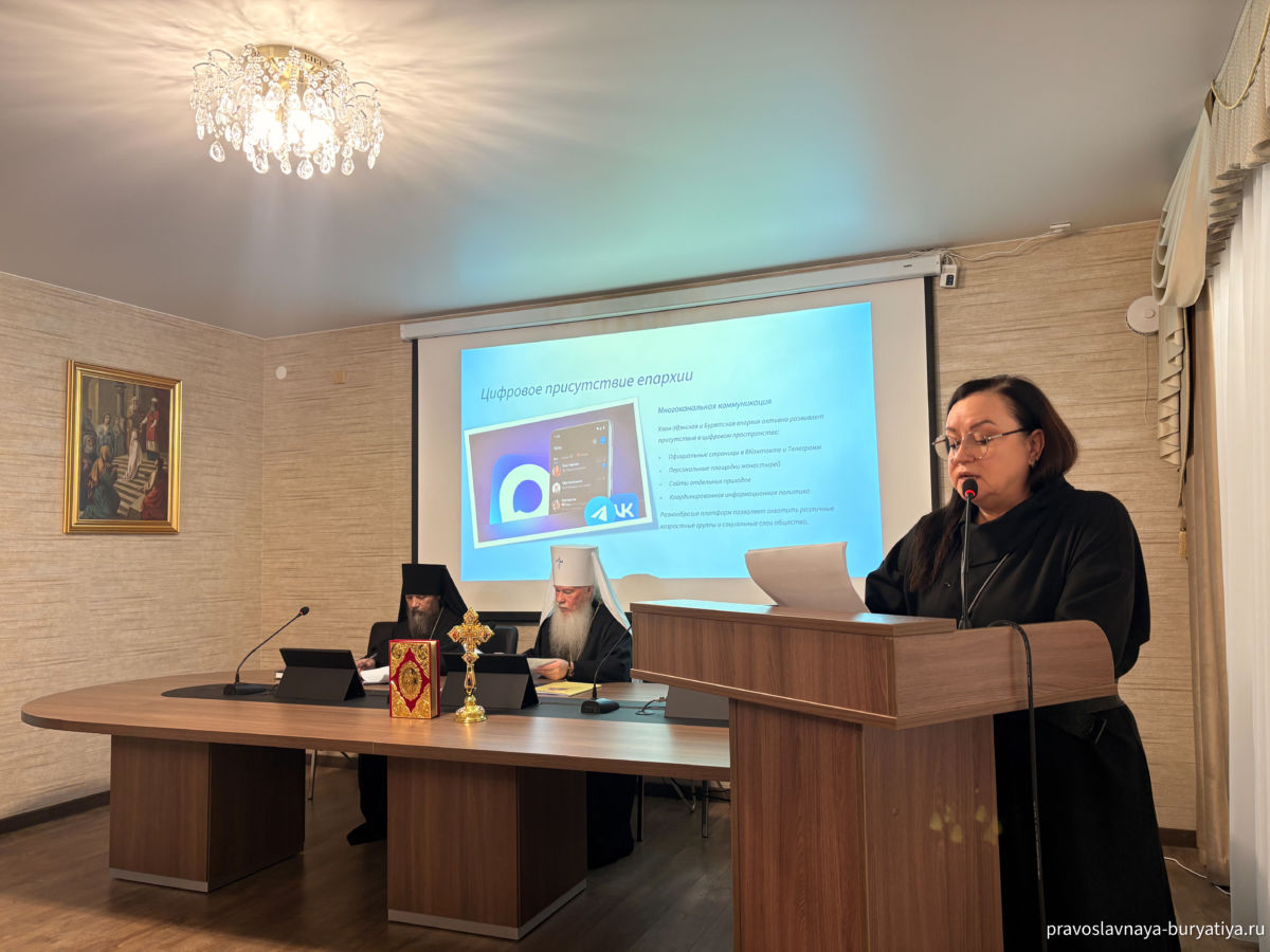 В ходе Епархиального собрания был заслушан доклад руководителя епархиального отдела по взаимоотношениям Церкви с обществом и СМИ Натальи Леонидовны Шуплецовой о информационной деятельности епархии, а так же доклад заведующей канцелярии Улан — Удэнской и Бурятской епархии Земфиры Арифовны Языковой о составлении отчетности в приходах и монастырях.