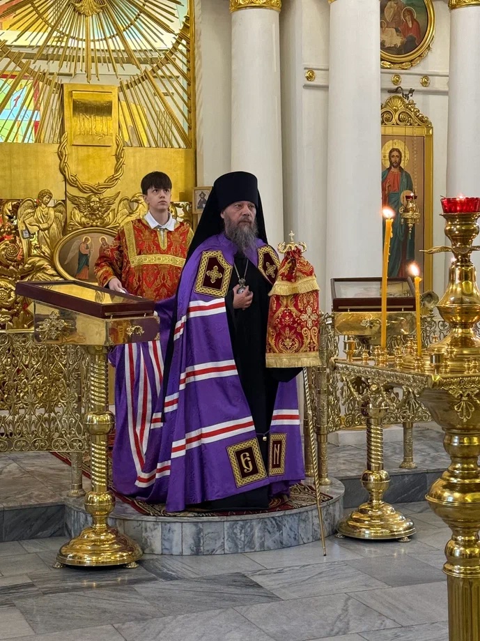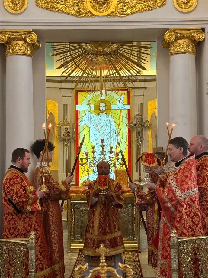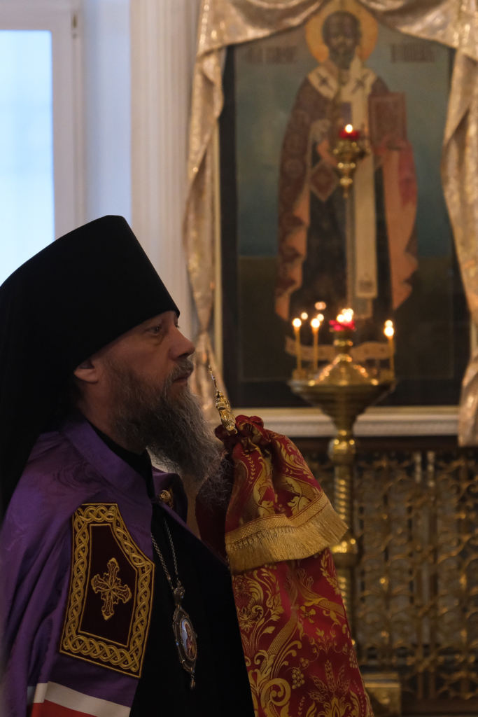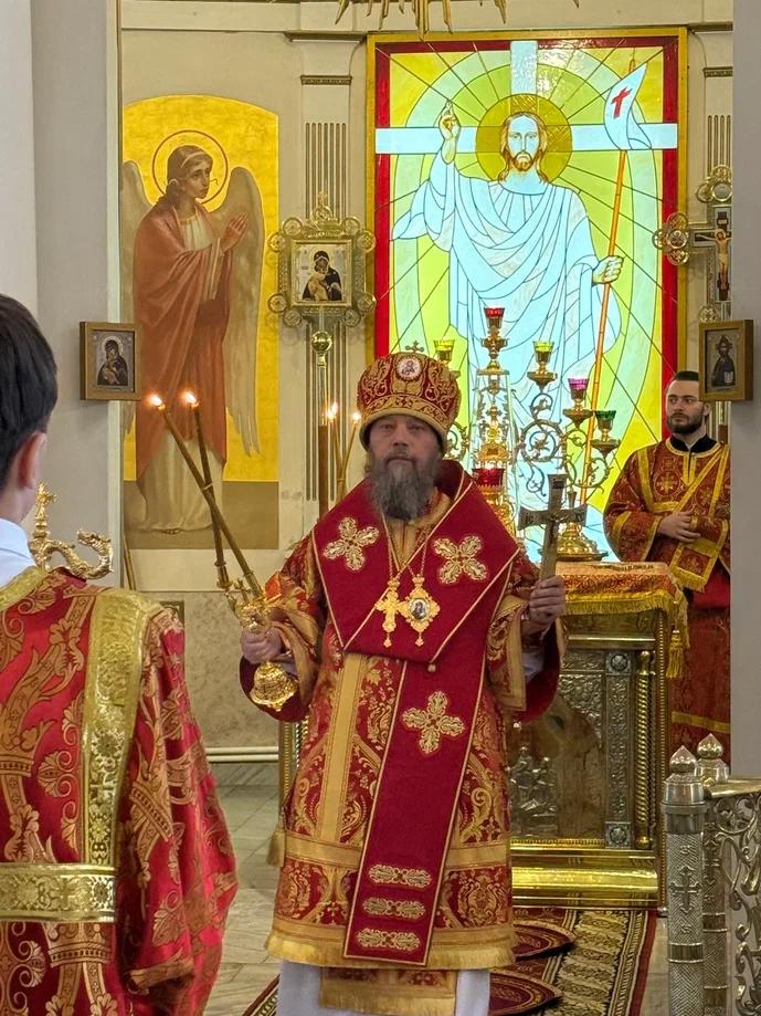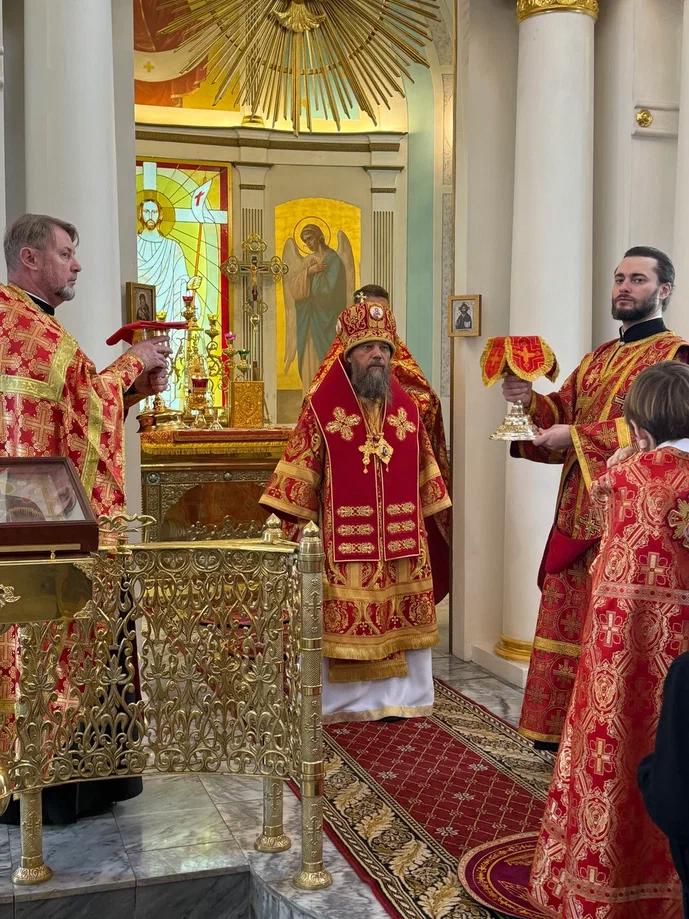 Преосвященнейшиму Владыке Николаю сослужали: протоирей Сергей Федченко, иерей Александр Иванов и духовенство собора. Диаконский чин возглавил: диакон Максим Савенков.