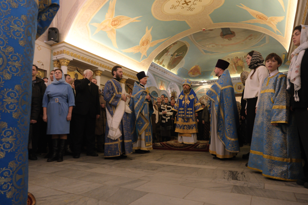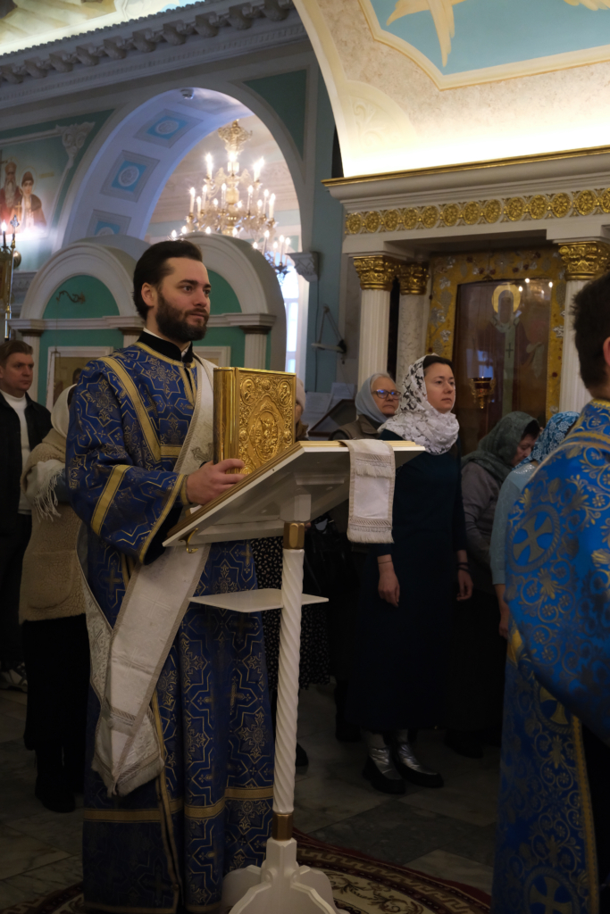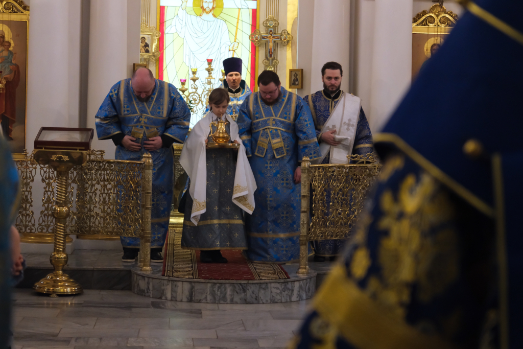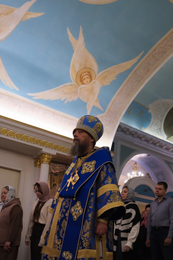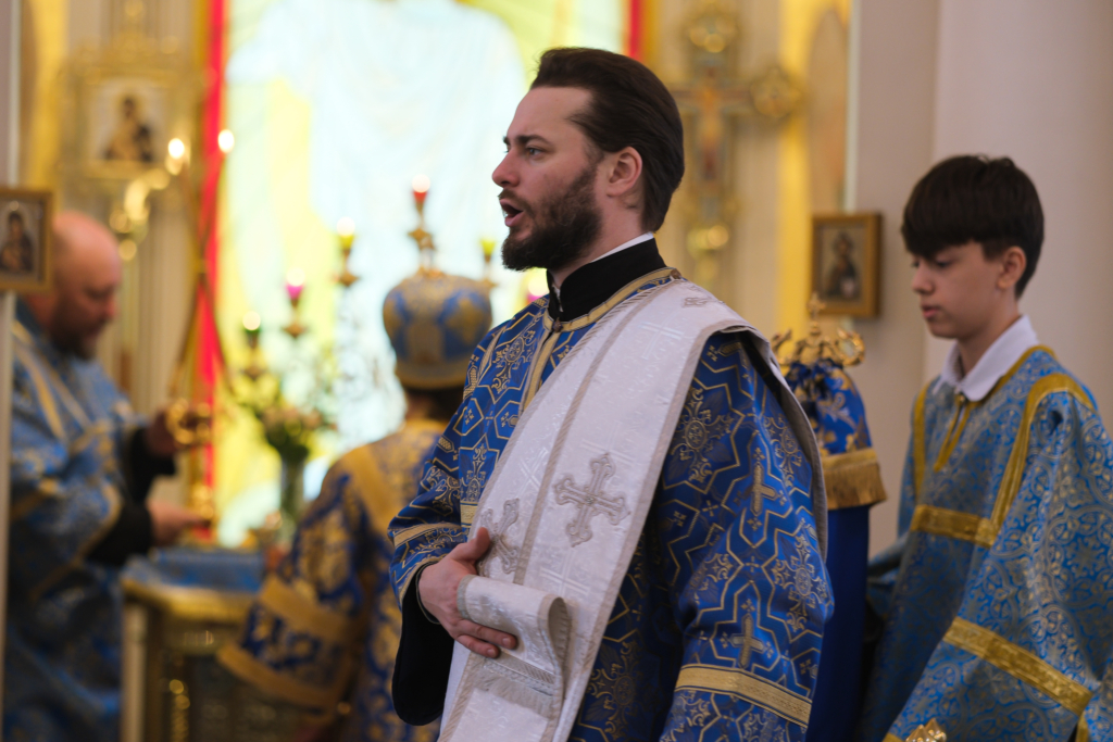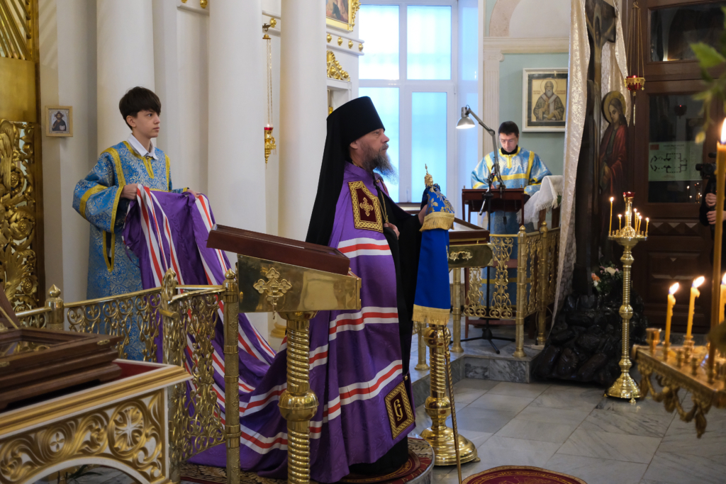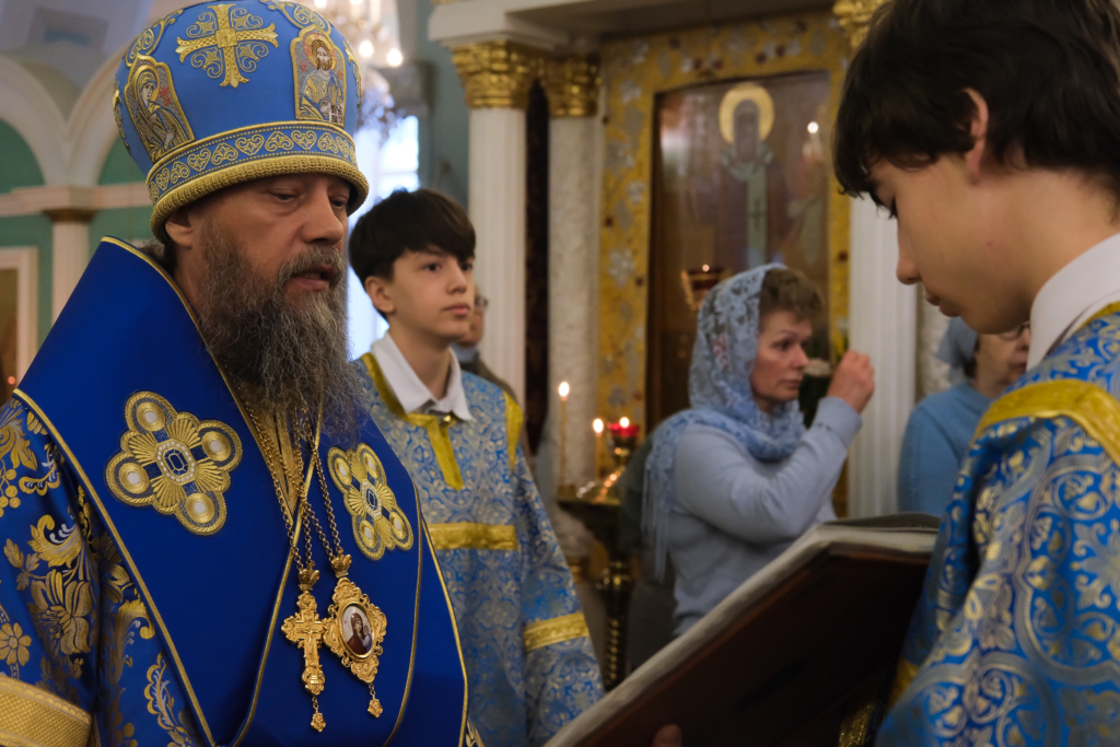 Преосвященнейшиму Владыке Николаю сослужали: протоирей Сергей Федченко, иерей Александр Иванов и духовенство собора. Диаконский чин возглавил: диакон Максим Савенков.